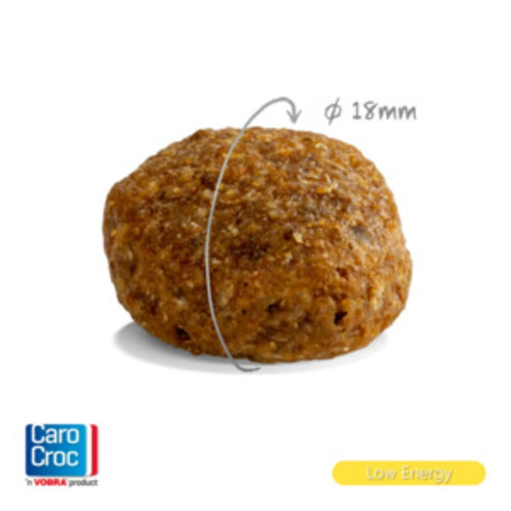 CaroCroc Hondenvoer Low EnergyCaroCroc Low Energy is een brok voor volwassen honden met relatief weinig lichamelijke inspanning, honden die last hebben van of neigen naar overgewicht of gecastreerd/gesteriliseerd zijn. Een hond met een lage lichamelijke inspanning heeft een lagere energiebehoefte dan een gemiddeld actieve hond. Deze CaroCroc brokken zijn in vetten en eiwitten precies afgestemd op de hoeveelheid energie die een hond nodig heeft.LichtverteerbaarVolledige voedingGemaakt met ho