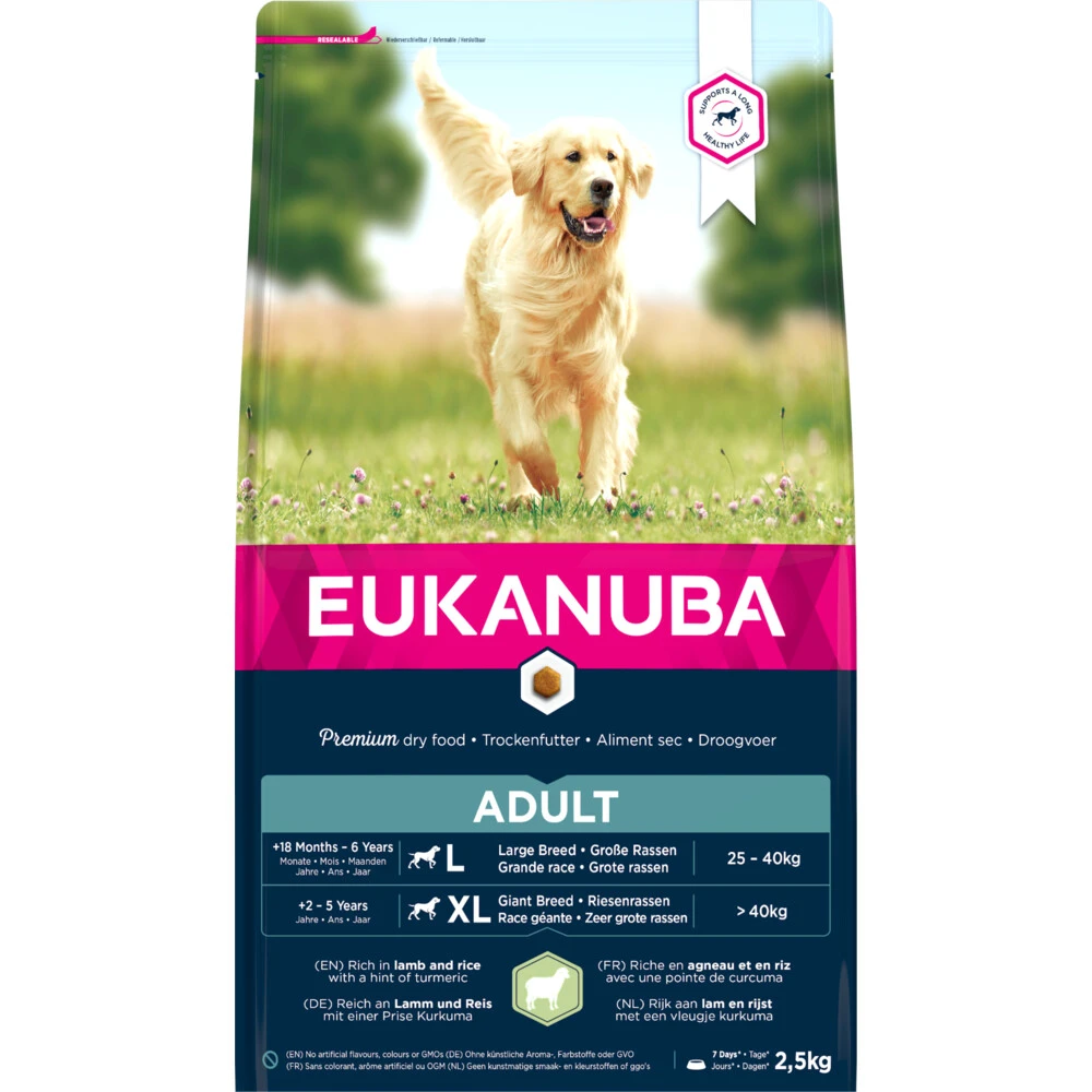 Eukanuba Dog Adult Large Lam – Rijst 2,5 kgEukanuba’s volwassen recept, rijk aan lam en rijst, is speciaal samengesteld om honden van grote rassen met een gevoelige huid en maag te ondersteunen.Dit droogvoer voor honden bevat prebiotica en bietenpulp om een gezonde spijsvertering te ondersteunen. Het bevat ook omega 6- en omega 3-vetzuren voor het behoud van een gezonde huid en een stralende vacht, en hoogwaardige dierlijke eiwitten die bijdragen aan de opbouw van sterke, soepele spieren.D