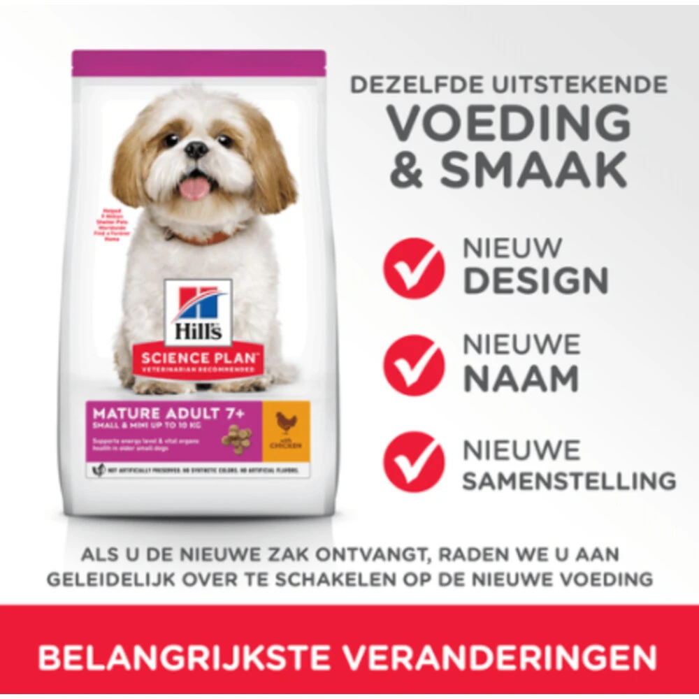 Hillu0027s Canine Mature Adult Small – Mini KipGroot in de liefde, klein van formaat. Hillu0027s Small & Mini Mature Adult 7+ met Kip is hondenvoer voor kleine en mini honden om elegant ouder te worden. Speciaal gemaakt met kleine brokjes en bevat een synergetische mix van voedingsstoffen voor energie en kracht.Gebalanceerde mineralen voor een gezond hart, nieren en blaasVoedzame omega 6- & vitamine E-mix voor een gezonde huid en weelderige vachtMakkelijk verteerbare ingrediënten