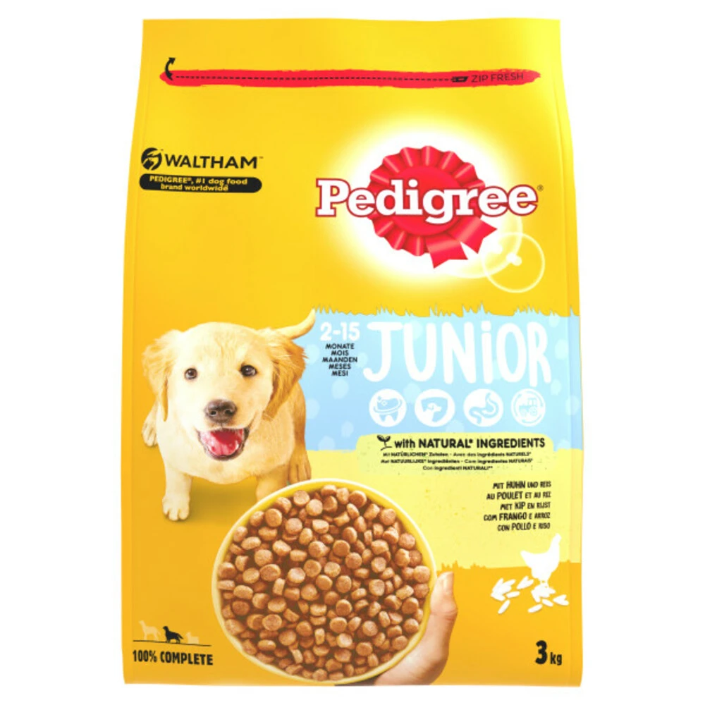 Pedigree Vital Droogvoer Junior Kip & RijstDeze Pedigree® Junior droge hondenbrokken bevatten een volledige droge dierenvoeding met natuurlijke ingrediënten, speciaal afgestemd op puppyu0027s van 2 tot 15 maanden. Een gezonde brok met een uitgebalanceerde samenstelling zal ervoor zorgen dat je puppy uit kan groeien tot een gezonde en gelukkige volwassen hond. Pedigree® Junior Kip voorziet je puppy in een aantal belangrijke basisbehoeftes:Ondersteunt een gezonde tandontwikkeling