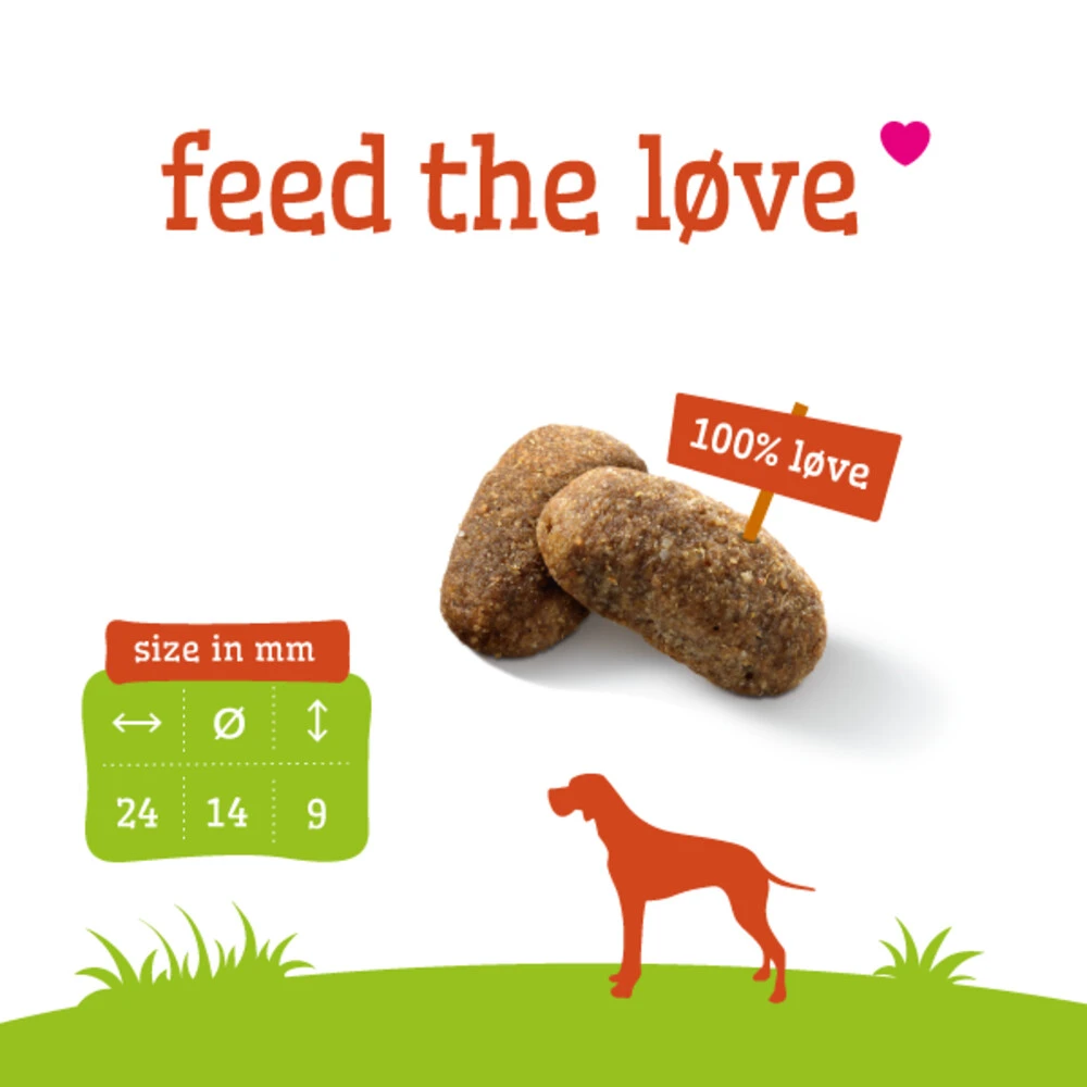 Smolke Hondenvoer Adult MaxiSmølke Adult Maxi is een complete Alles-in-één hondenvoeding afgestemd op de behoefte van grote volwassen honden vanaf 14-18 maanden met een gewicht boven de 30kg. Het recept van deze lekkere en gezonde hondenbrokjes heeft als basis drie verschillende dierlijke eiwitbronnen, namelijk (verse) kip, duurzaam gevangen vis en lam. De voeding is samengesteld zonder tarwegluten en er zitten geen kunstmatige geur-, kleur- en smaakstoffen in. Smølke